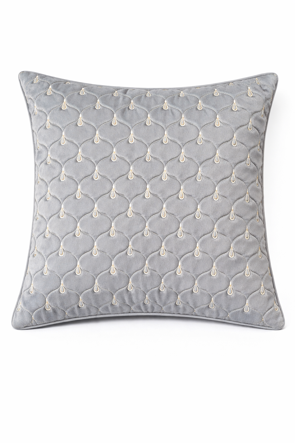 Enhance your living space with this luxury quilted cushion cover set, featuring an elegant embroidered teardrop-inspired pattern arranged in a refined, symmetrical layout. The softly padded quilted texture adds depth and comfort, while the delicate embroidery gives the design a rich and graceful appearance.
